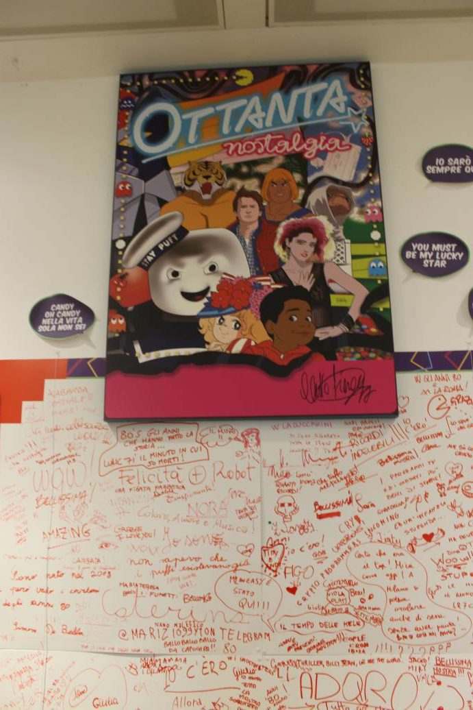 “Abbiamo contattato diversi collezionisti, che ci hanno aiutato a mettere insieme tutto quanto fa anni 80, dai dischi delle sigle tv ai giocattoli dei Masters, dal castello dei LEGO al costume di Ralph Supermaxieroe. Senza il loro contributo, sicuramente la mostra che avevamo in mente non sarebbe potuta esistere.”
