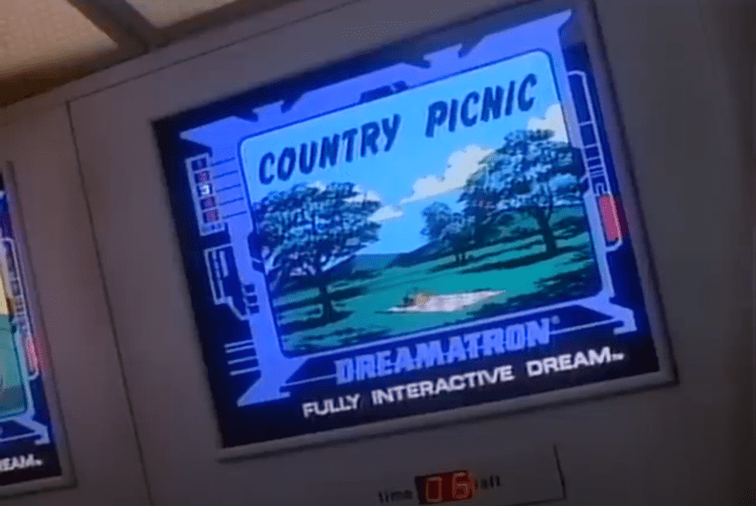 La moglie si sdraia preoccupata per gli strani fenomeni che sta vivendo e nella scena successiva, la stessa donna riappare in una specie di capsula spaziale. Un tizio in tuta tipo StarTrek le si avvicina in formandola che qualcosa è andato storto con il programma “Country Picnic“ della azienda “Dreamatron“. Fully interactive Dream!