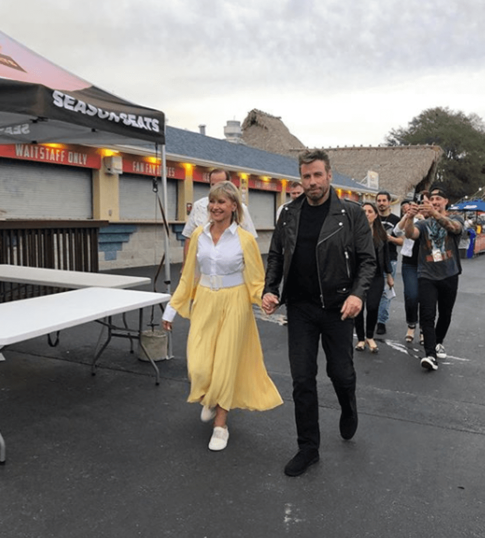 Gli attori hanno condiviso sui loro profili social le foto che li ritraevano insieme e Olivia ha commentato “La prima volta con questi abiti di scena dai tempi del film… sono così emozionata!”.