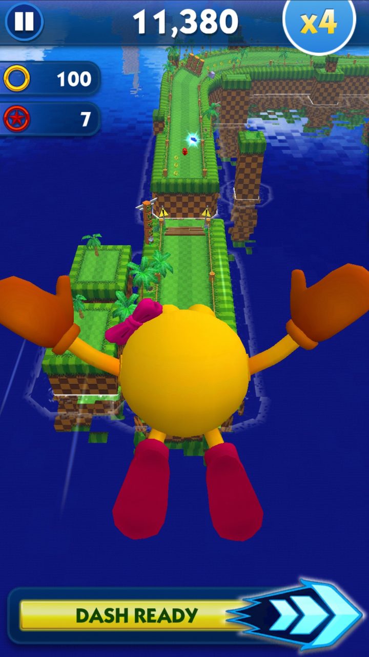 Per celebrare il quinto anniversario di Sonic Dash, le due app mobile li includeranno come personaggi giocabili oltre a nuovi contenuti sbloccabili. Questo speciale evento crossover promozionale durerà dal 20 febbraio al 20 marzo in Sonic Dash e PAC-MAN.